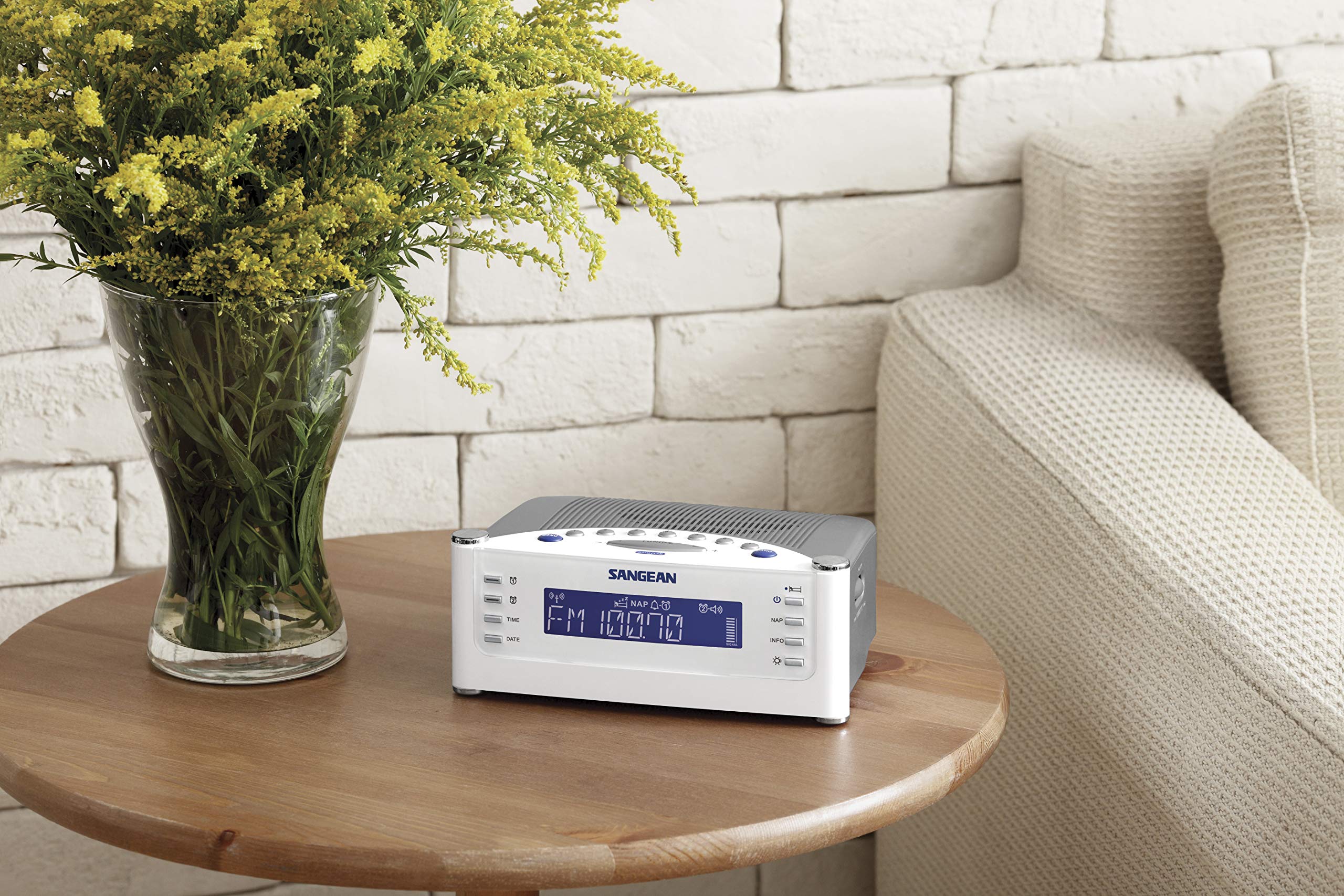 Sangean RCR-22 Atomic Clock with FM-RDS / AM / Aux-in Digital Tuning Clock Radio, silver, one size—