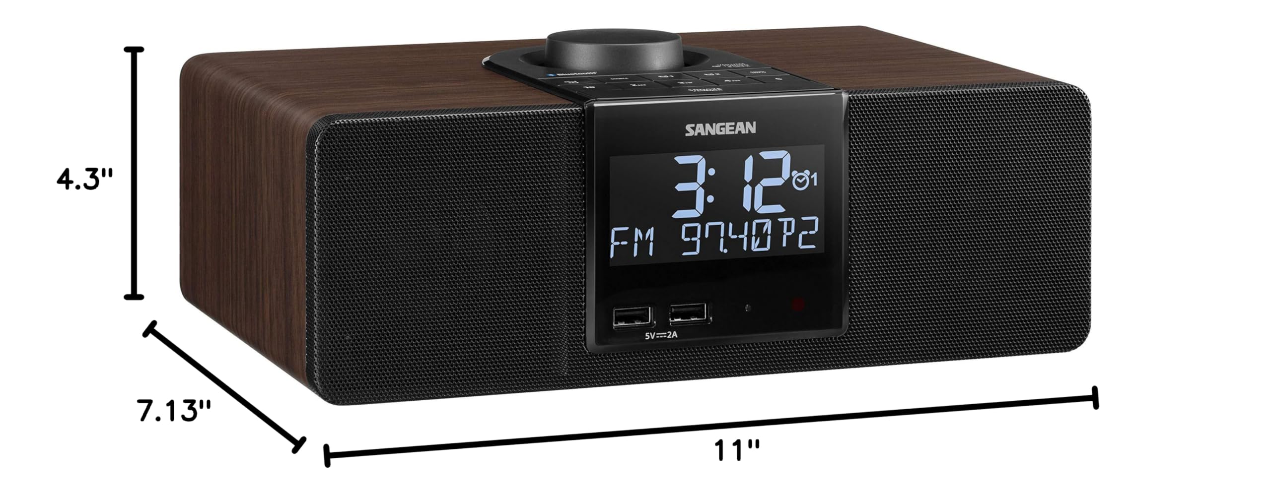 Sangean RCR-40 Wooden Clock Radio with AM/FM, Bluetooth, AUX, Digital Tuning and Battery Back-Up