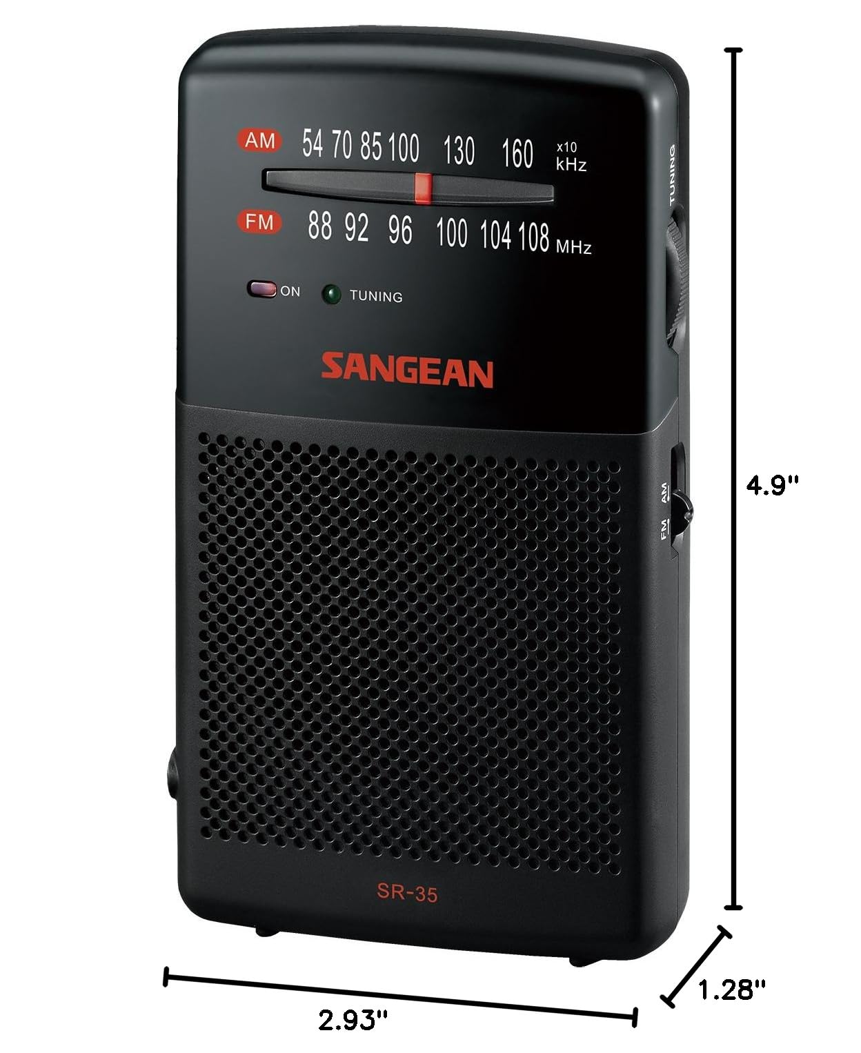 Sangean SR-35 AM/FM Analog Pocket Radio with Built-in Speaker, Black